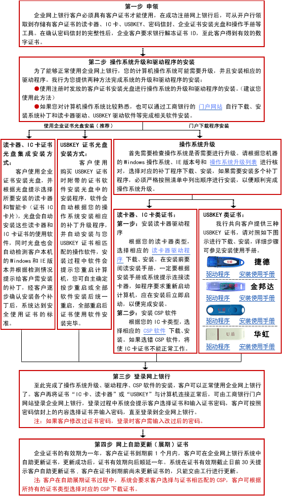 如果您在下载客户证书或读卡器的驱动程序和相关软件时有任何疑问,请您参考我行网站上的企业网银证书问题解答,也可以拨打95588或到银行网点咨询专业人员。